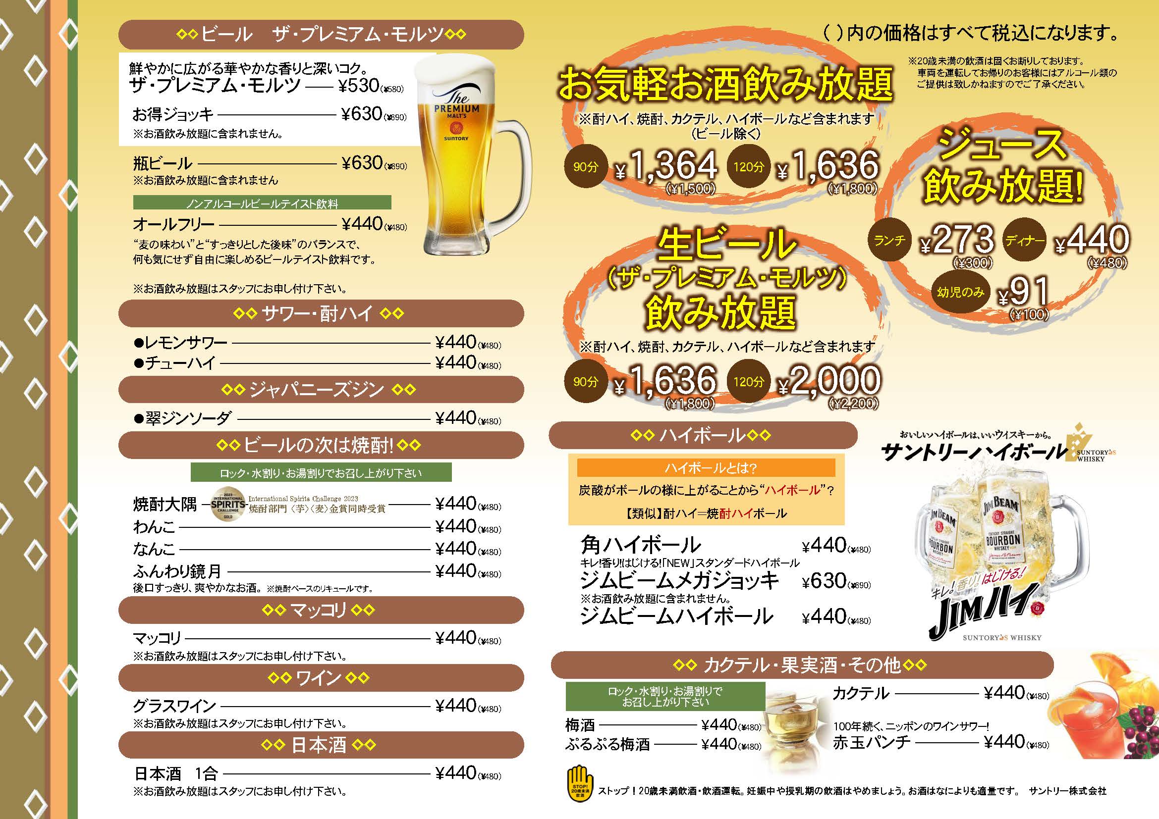 開店11:00~閉店23:00(ご来店ストップ:22:00)ラストオーダー22:30