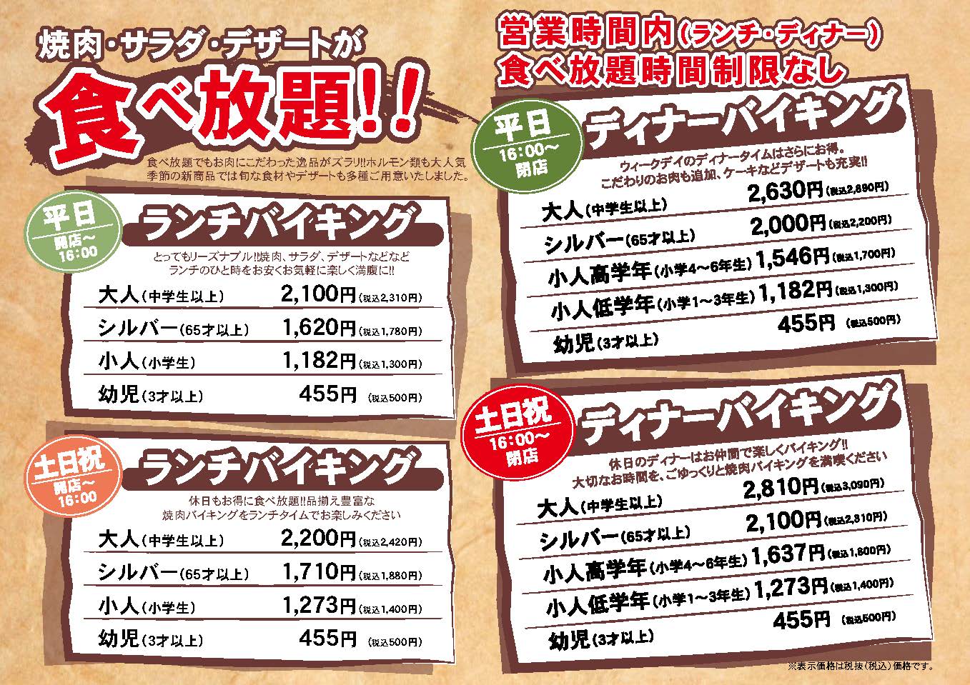 焼肉、サラダ、ごはん、麺類、アイスクリーム、デザート等食べ放題! ※こちらの店舗はお寿司の取り扱いがありません。